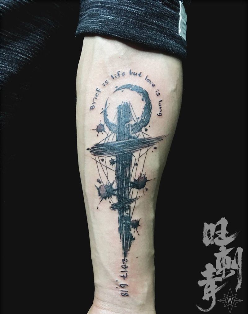 当前位置: 首页 >辽宁省沈阳市纹身店-旺刺青纹身工作室纹身图案>十字架纹身图片_手臂水墨十字架纹身图案