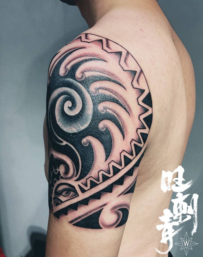 • 纹身吧推荐的披肩图腾半胛纹身图案作品展示