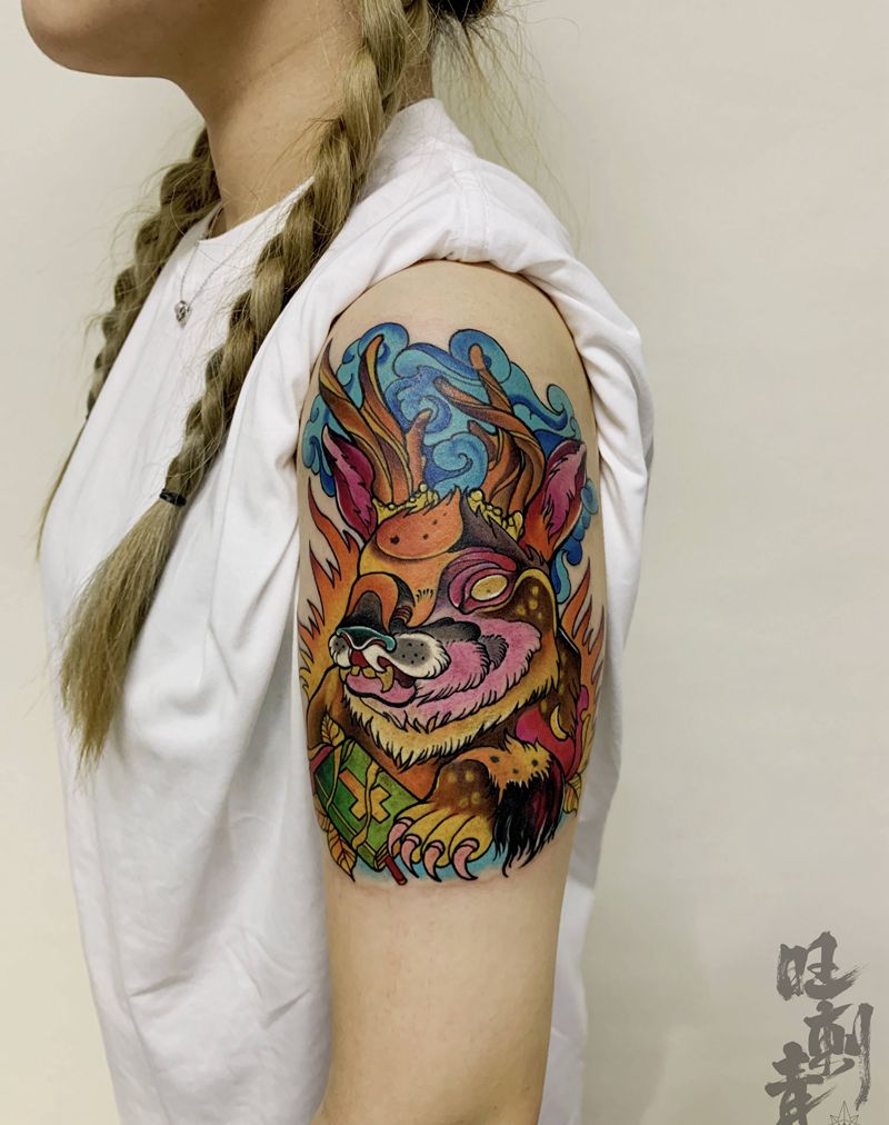 当前位置: 首页 >辽宁省沈阳市纹身店-旺刺青纹身工作室纹身图案>new school兔子纹身图片_手臂New School兔子纹身图案