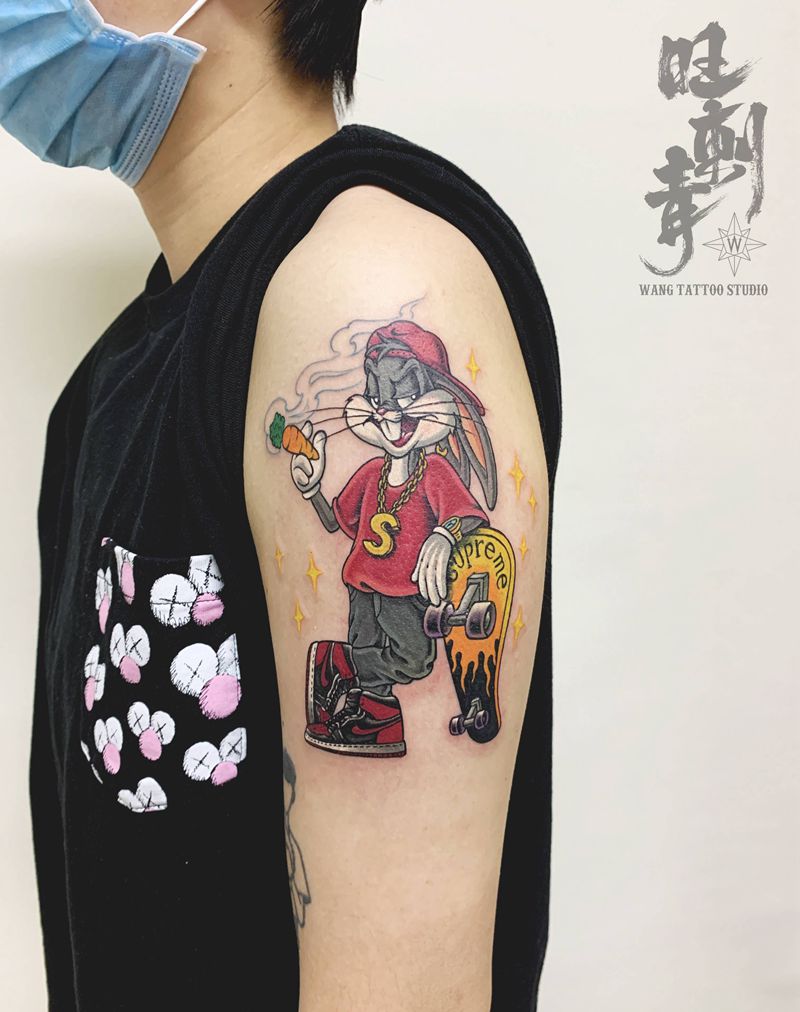 当前位置: 首页 >辽宁省沈阳市纹身店-旺刺青纹身工作室纹身图案>兔八哥纹身图片_手臂New School兔八哥兔子纹身图案