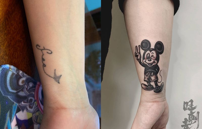 当前位置: 首页 >辽宁省沈阳市纹身店-旺刺青纹身工作室纹身图案>米奇遮盖旧纹身纹身图片_手臂米奇米老鼠纹身图案