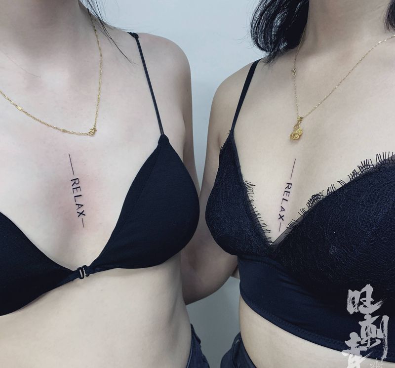 当前位置: 首页 >辽宁省沈阳市纹身店-旺刺青纹身工作室纹身图案>Relax纹身图片_胸部图腾几何英文纹身图案