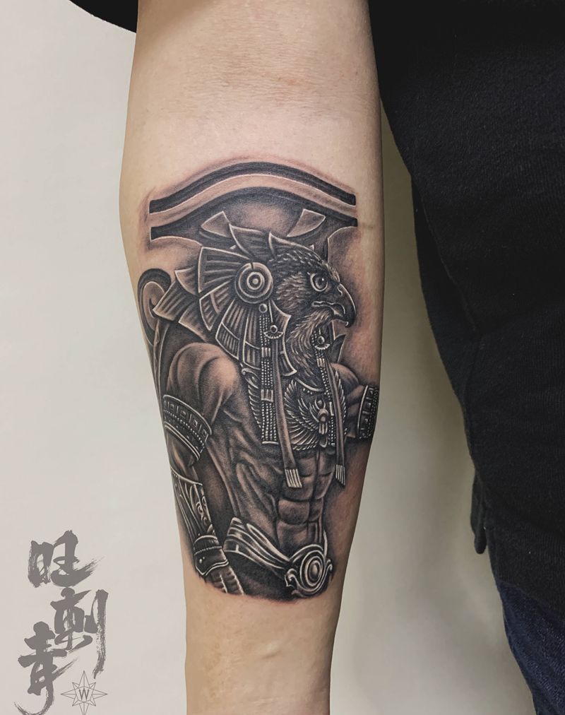 当前位置: 首页 >辽宁省沈阳市纹身店-旺刺青纹身工作室纹身图案>荷鲁斯(左)阿努比斯(右)纹身图片_手臂欧美写实古希腊神纹身图案