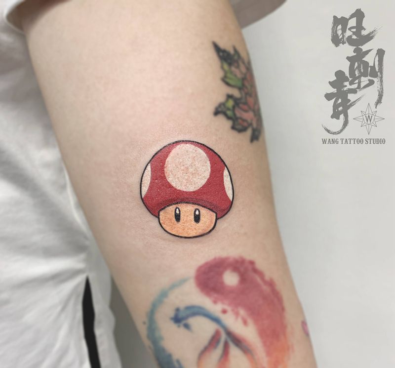 当前位置: 首页 >辽宁省沈阳市纹身店-旺刺青纹身工作室纹身图案>超级玛丽的小蘑菇纹身图片_手臂New School蘑菇超级玛丽纹身图案