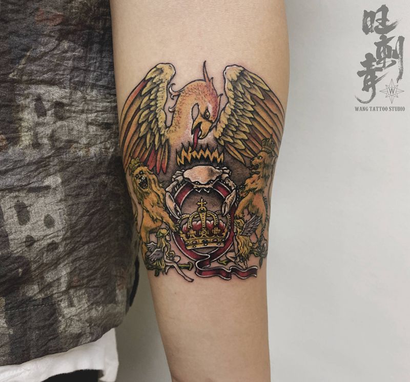 当前位置: 首页 >辽宁省沈阳市纹身店-旺刺青纹身工作室纹身图案>皇后乐队logo纹身图片_手臂欧美写实图腾皇后乐队logo纹身图案