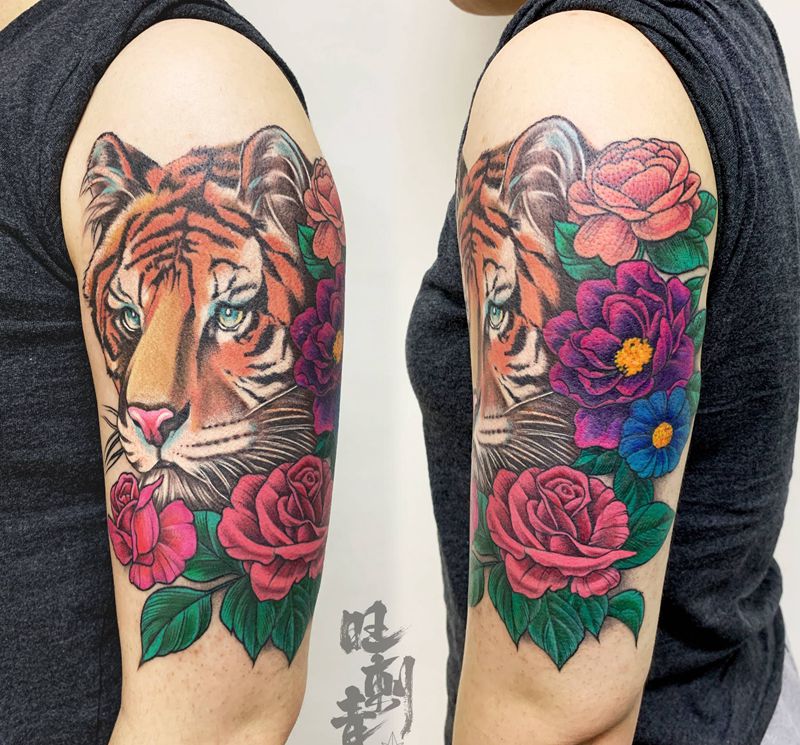 当前位置: 首页 >辽宁省沈阳市纹身店-旺刺青纹身工作室纹身图案>tiger老虎纹身图片_手臂New School老虎纹身图案