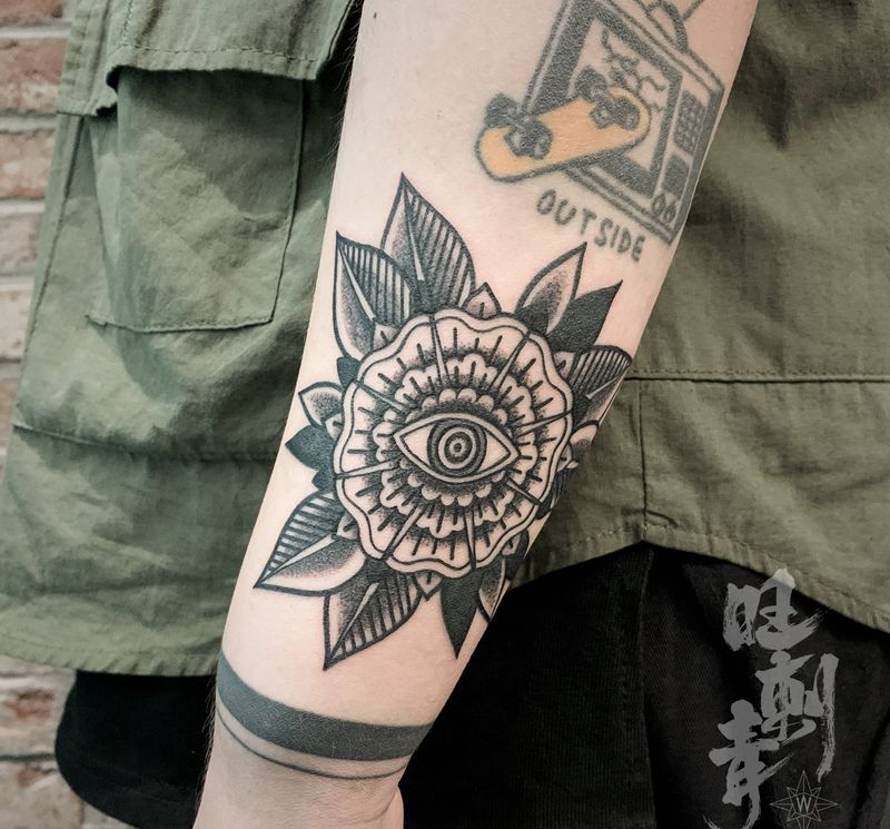 当前位置: 首页 >辽宁省沈阳市纹身店-旺刺青纹身工作室纹身图案>old school 曼陀罗纹身图片_手臂Old School点刺曼陀罗纹身图案