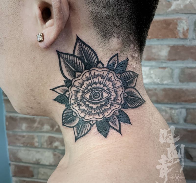 当前位置: 首页 >辽宁省沈阳市纹身店-旺刺青纹身工作室纹身图案>old school 曼陀罗纹身图片_颈部Old School点刺曼陀罗纹身图案