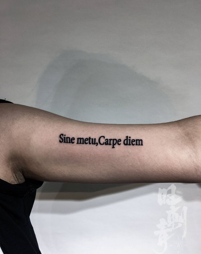 当前位置: 首页 >辽宁省沈阳市纹身店-旺刺青纹身工作室纹身图案>文字纹身图片_手臂花体字图腾纹身图案
