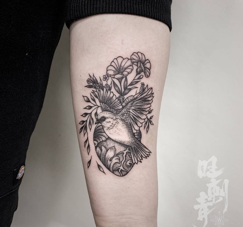 当前位置: 首页 >辽宁省沈阳市纹身店-旺刺青纹身工作室纹身图案>极乐鸟纹身图片_手臂点刺几何鸟纹身图案