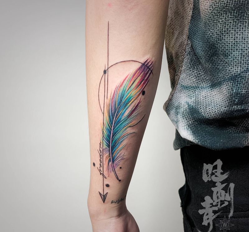 当前位置: 首页 >辽宁省沈阳市纹身店-旺刺青纹身工作室纹身图案>彩色羽毛纹身图片_手臂水彩水墨羽毛纹身图案
