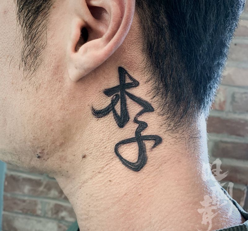 当前位置: 首页 >辽宁省沈阳市纹身店-旺刺青纹身工作室纹身图案>书法字 木子纹身图片_颈部图腾花体字书法纹身图案