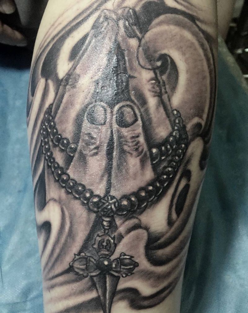 祈福纹身图片_成品腿部写实习俗传统静物宗教纹身图案