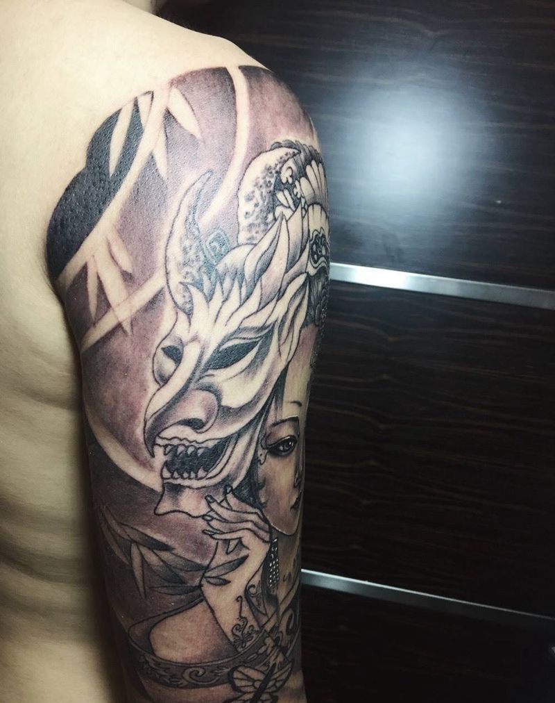 • 纹身吧推荐的披肩图腾半胛纹身图案作品展示