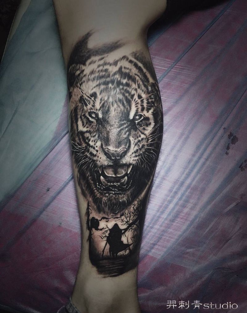 当前位置: 首页 >辽宁省沈阳市纹身店-羿·刺青纹身工作室纹身图案>写实大猫纹身图片_成品写实腿部动物纹身图案
