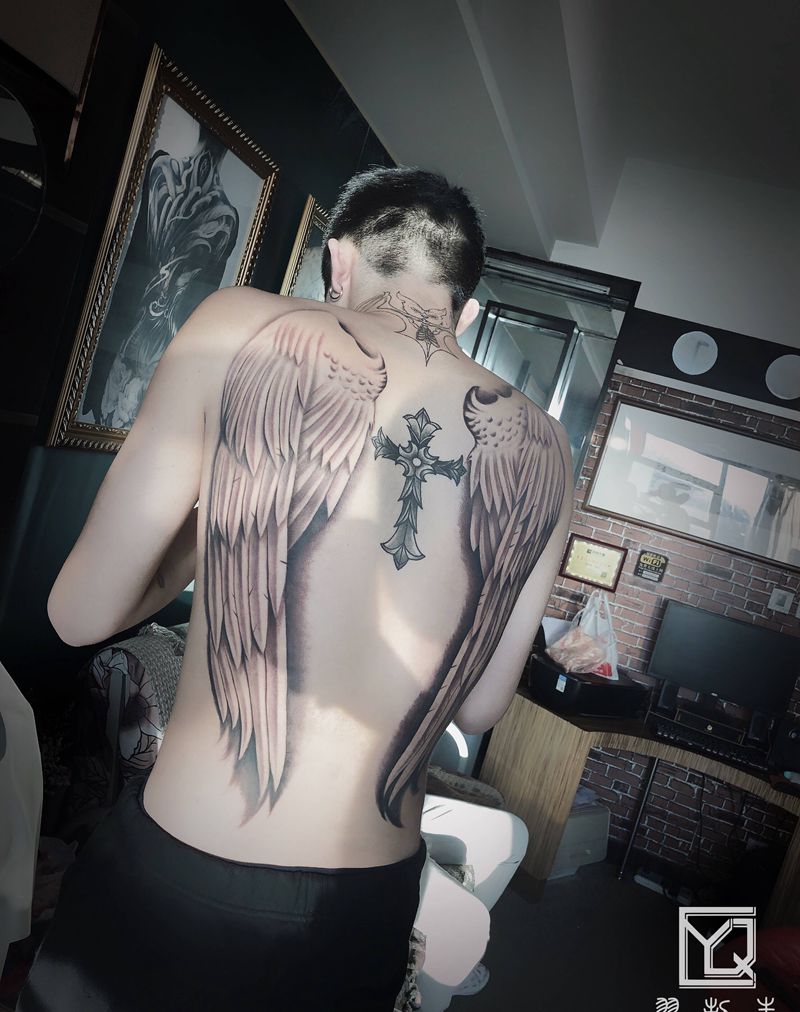 当前位置: 首页 >辽宁省沈阳市纹身店-羿·刺青纹身工作室纹身图案>翅膀纹身图片_背部肩部新传统欧美写实翅膀满背羿刺青纹身图案