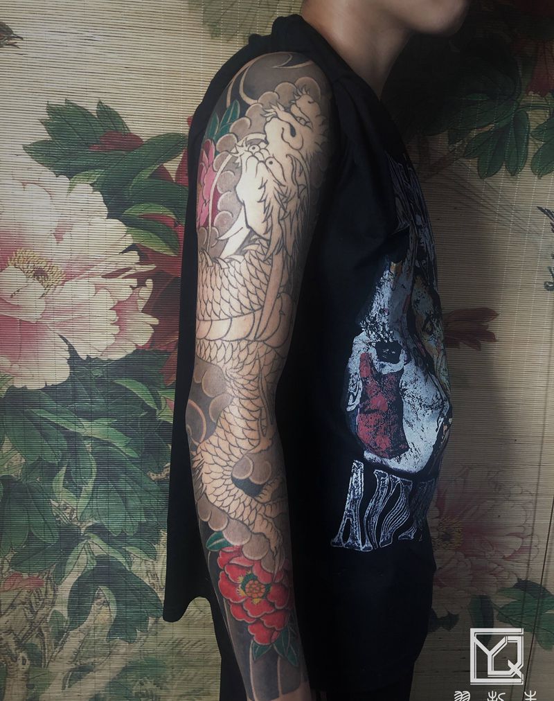当前位置: 首页 >辽宁省沈阳市纹身店-羿·刺青纹身工作室纹身图案>老传统花臂纹身图片_手臂肩部老传统新传统老传统日式花臂龙纹身图案
