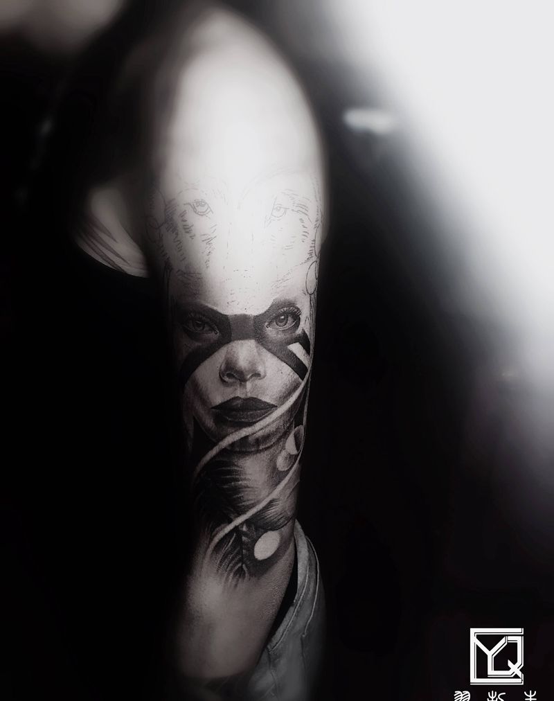 当前位置: 首页 >辽宁省沈阳市纹身店-羿·刺青纹身工作室纹身图案>狼与女孩纹身图片_手臂肩部欧美写实欧美写实狼花臂纹身图案