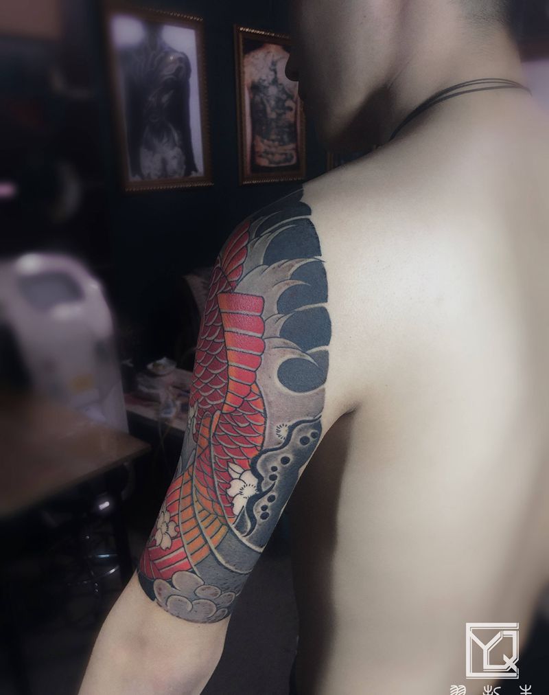 当前位置: 首页 >辽宁省沈阳市纹身店-羿·刺青纹身工作室纹身图案>半甲鱼未完纹身图片_胸部肩部老传统新传统半甲老传统日式鱼般若纹身图案