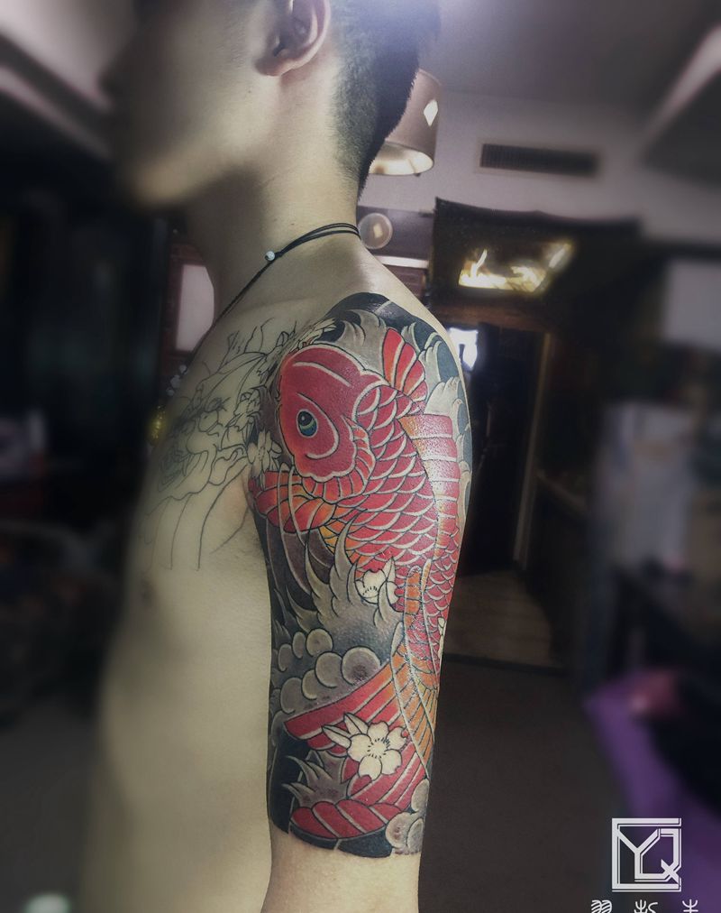 当前位置: 首页 >辽宁省沈阳市纹身店-羿·刺青纹身工作室纹身图案>半甲鱼未完纹身图片_胸部肩部老传统新传统半甲老传统日式鱼般若纹身图案