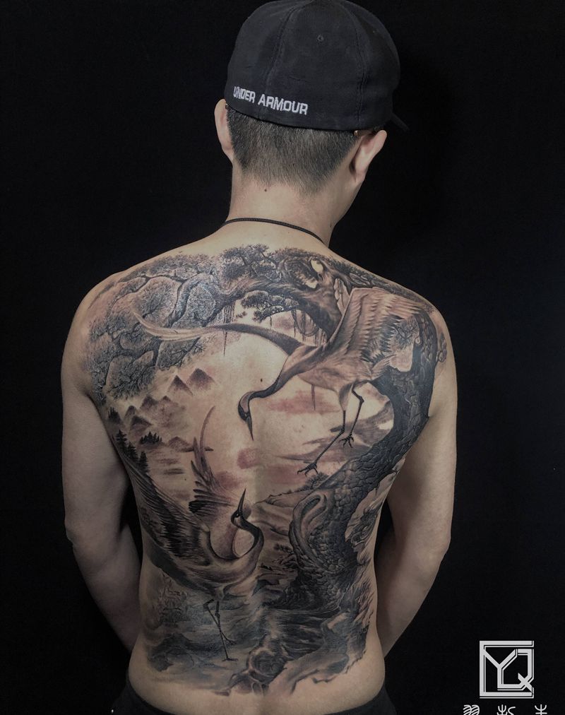 当前位置: 首页 >辽宁省沈阳市纹身店-羿·刺青纹身工作室纹身图案>鹤纹身图片_背部腰部新传统满背鹤树纹身图案