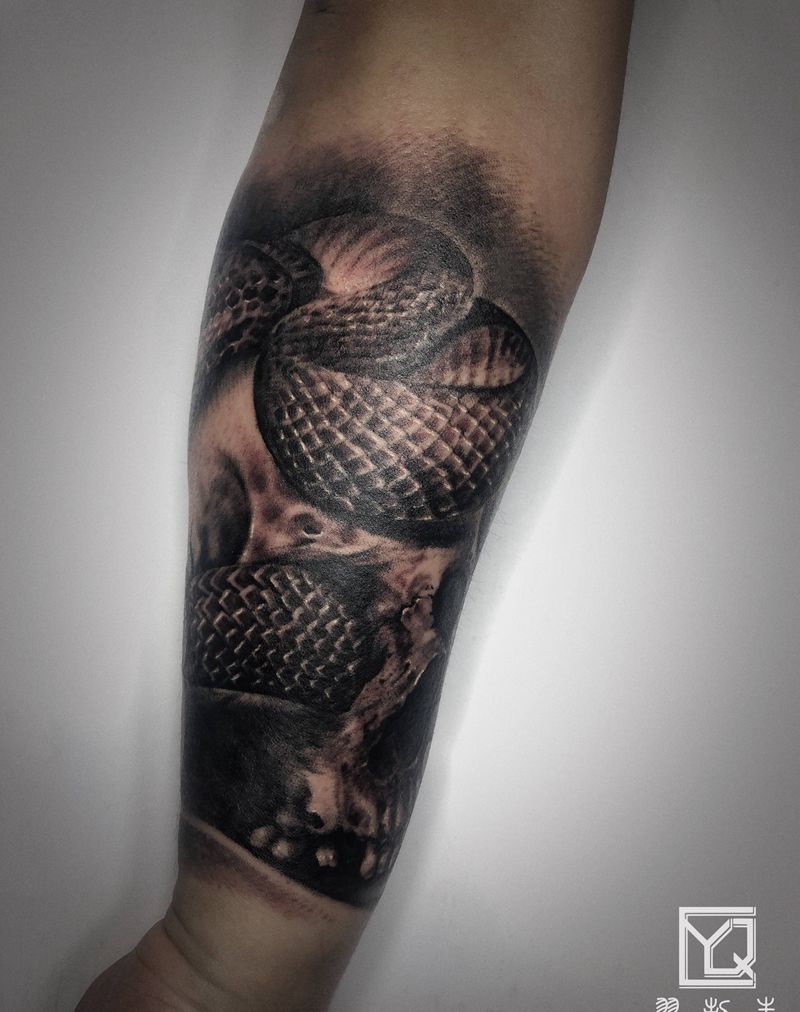 当前位置: 首页 >辽宁省沈阳市纹身店-羿·刺青纹身工作室纹身图案>蛇骷髅纹身图片_手臂手部欧美写实欧美写实蛇花臂骷髅纹身图案