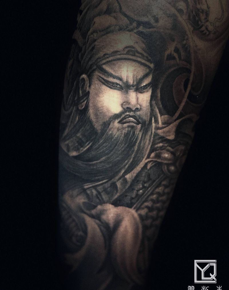 当前位置: 首页 >辽宁省沈阳市纹身店-羿·刺青纹身工作室纹身图案>关公关羽纹身图片_脚部腿部新传统关公关羽关二爷纹身图案