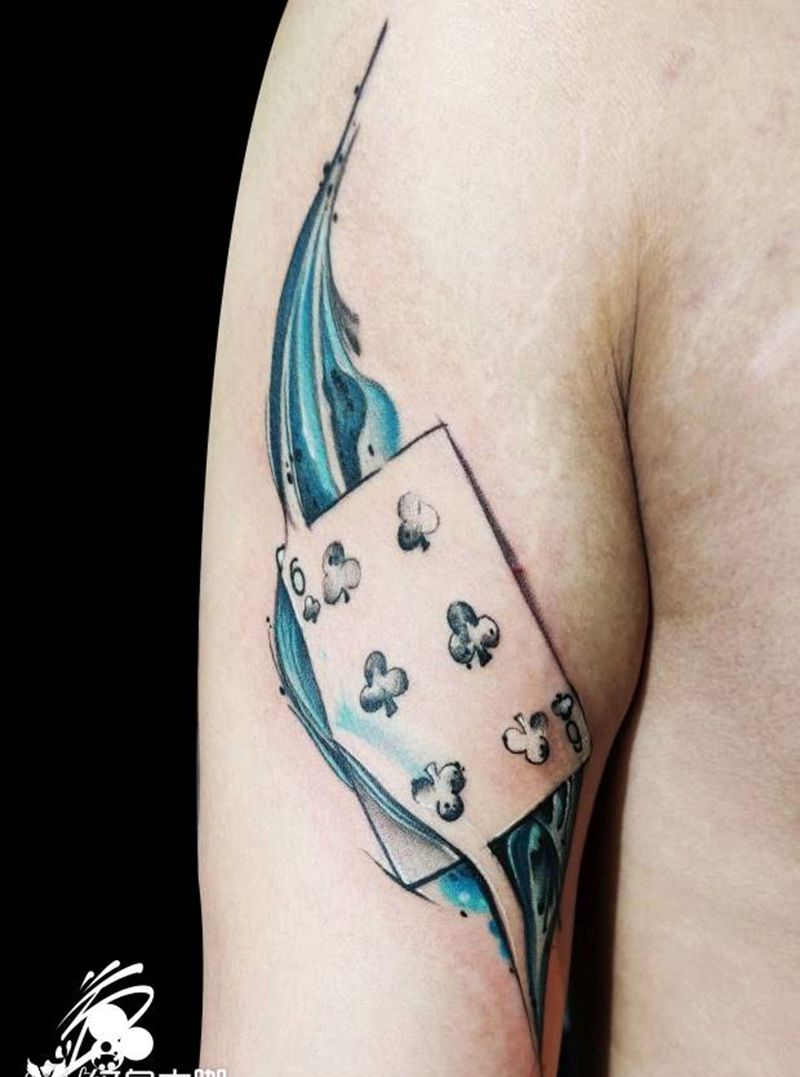 ♧⑥纹身图片_手臂New School水墨扑克牌水彩原创纹身图案