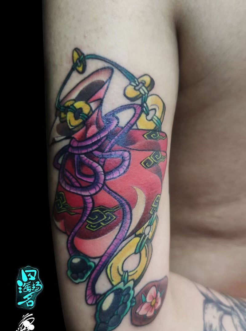 当前位置: 首页 >辽宁省沈阳市纹身店-沈阳513刺青纹身图案>钱袋纹身图片_手臂New School招财钱袋樱花纹身图案