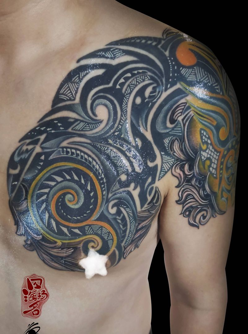 • 纹身吧推荐的披肩图腾半胛纹身图案作品展示