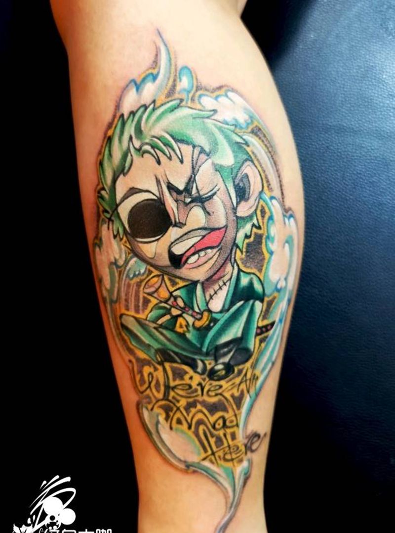 索隆纹身图片_腿部New School海贼王索隆纹身图案