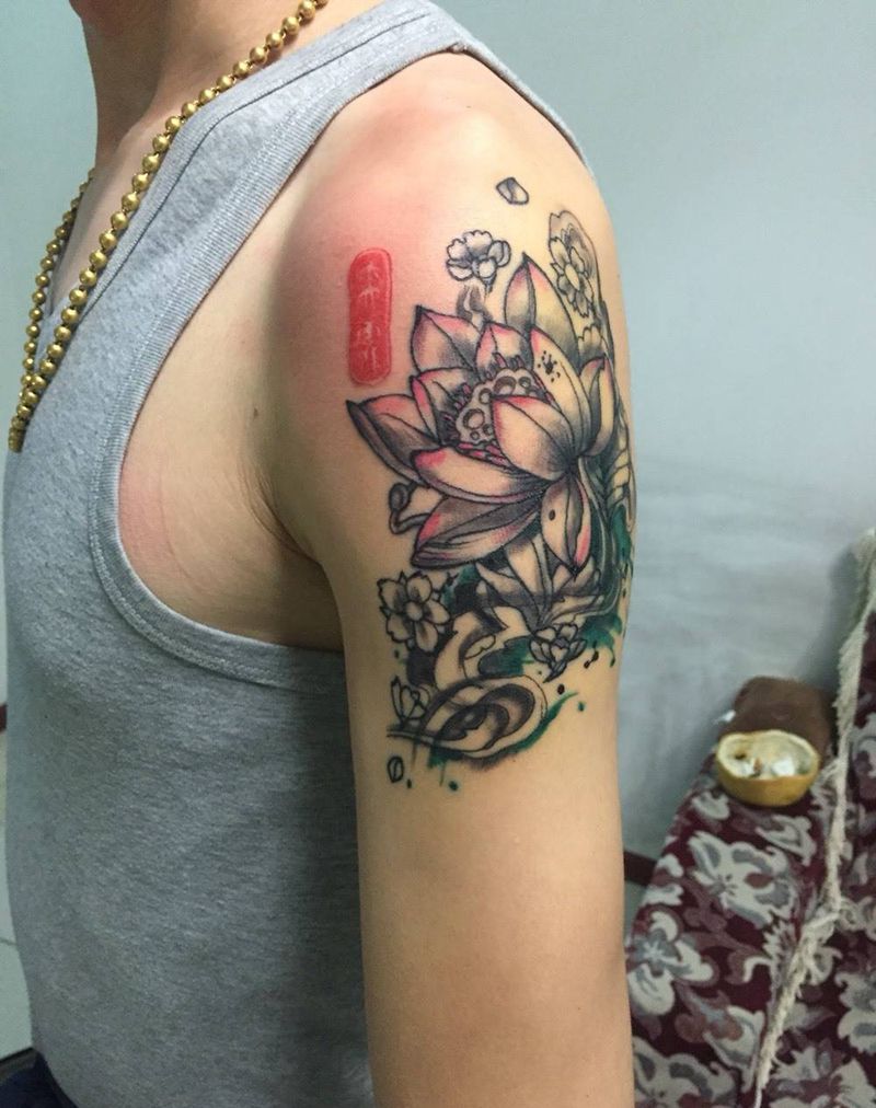 一组15张莲花纹身手
