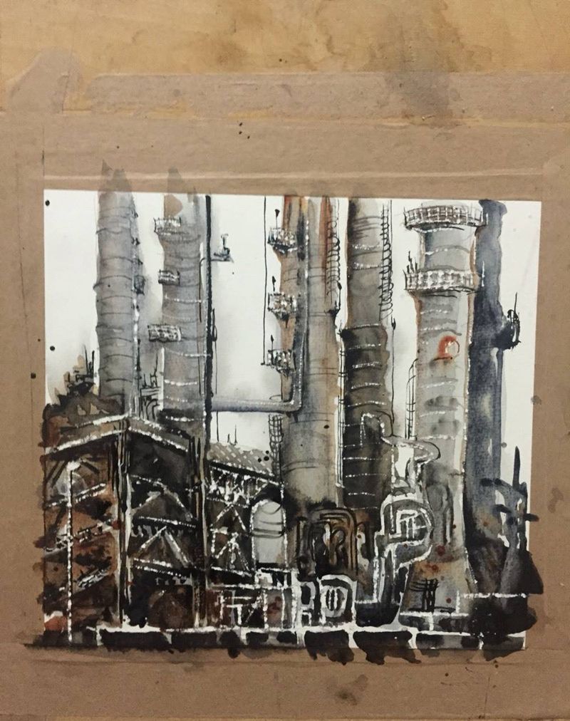 工业题材水彩创作纹身图片
