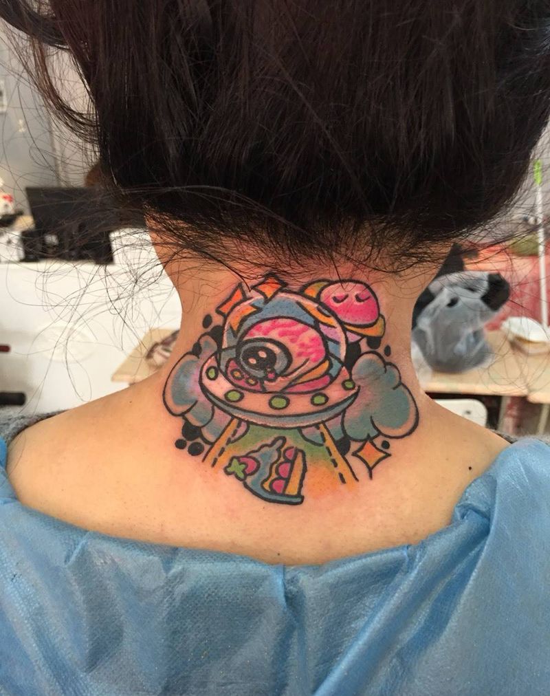 遮盖作品纹身图片_成品颈部清新贴纸纹身图案