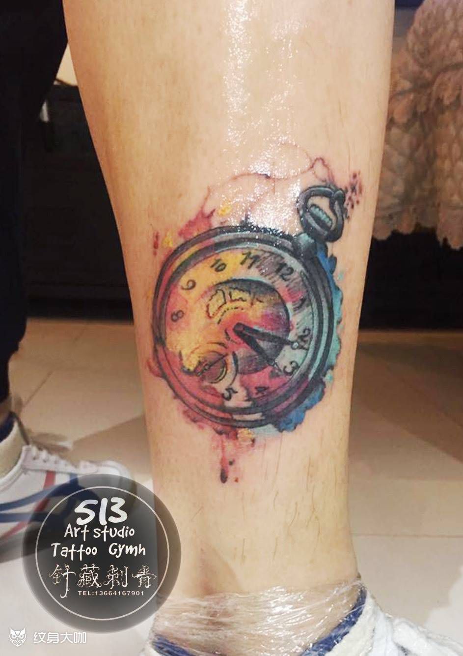 当前位置: 首页 >辽宁省沈阳市纹身店-沈阳513刺青纹身图案>水彩怀表纹身图片_成品腿部欧美清新贴纸纹身图案