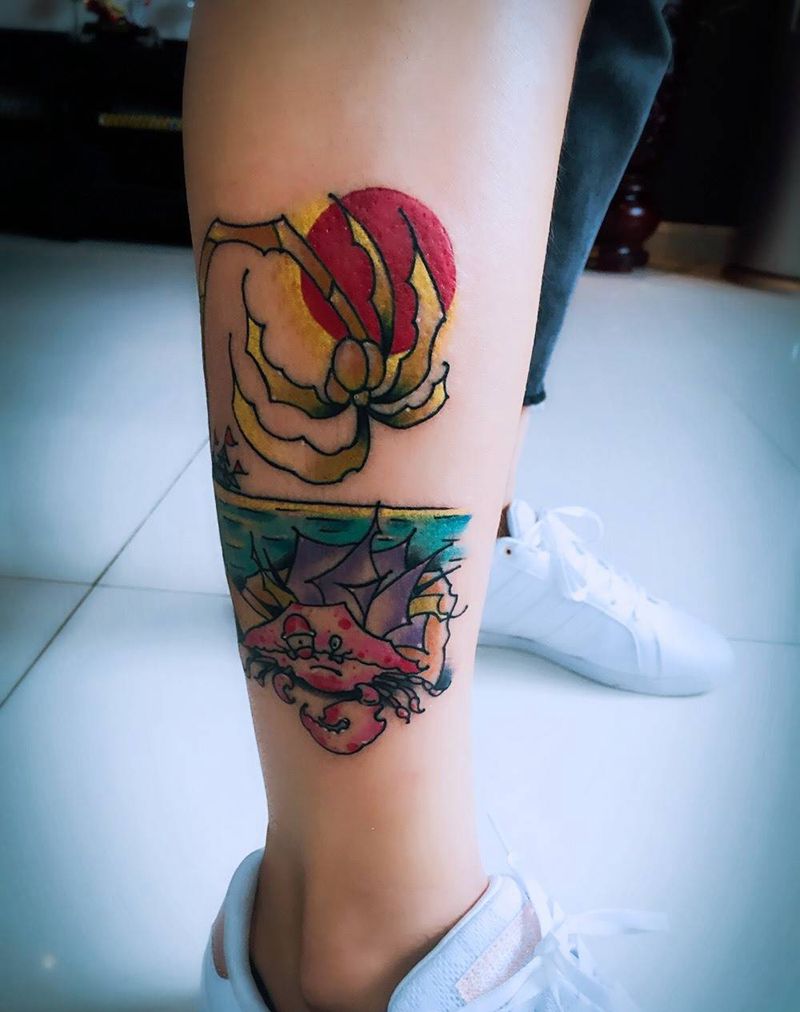 当前位置: 首页 >辽宁省沈阳市纹身店-沈阳513刺青纹身图案>原创new school纹身图片_成品腿部欧美植物动物静物贴纸纹身图案