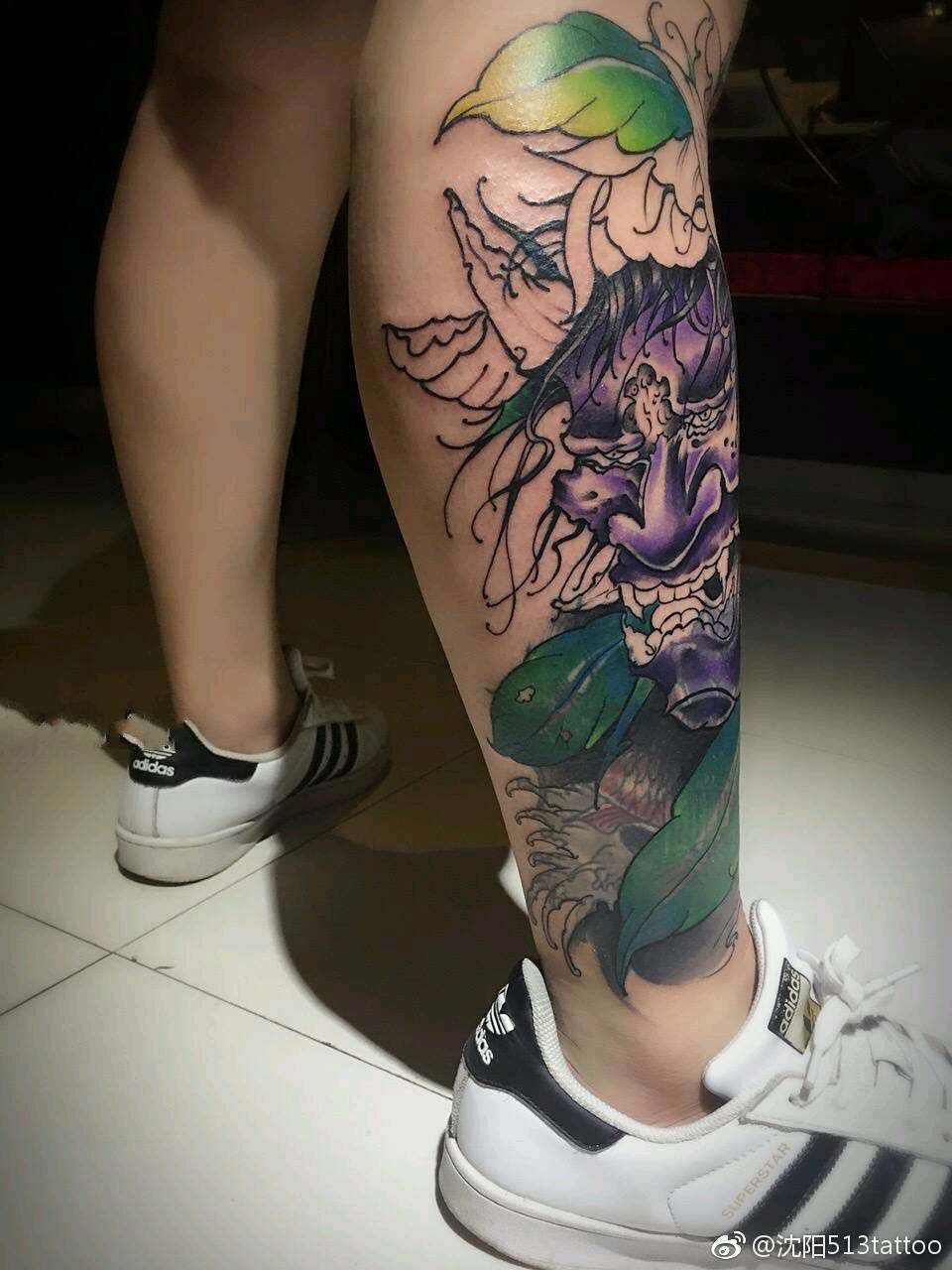 • T网红王老大花腿龙纹身图片_腿部新传统纹身图案