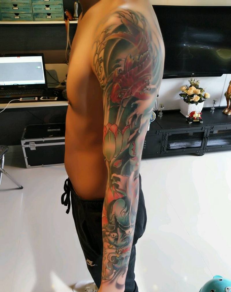 当前位置: 首页 >辽宁省沈阳市纹身店-沈阳513刺青纹身图案>原创花臂纹身图片_手臂传统动物植物静物鬼神原创成品纹身图案