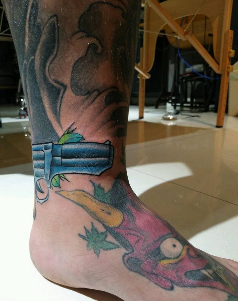 • T包小腿吹火男+阿多福纹身图片_腿部老传统新传统吹火男阿