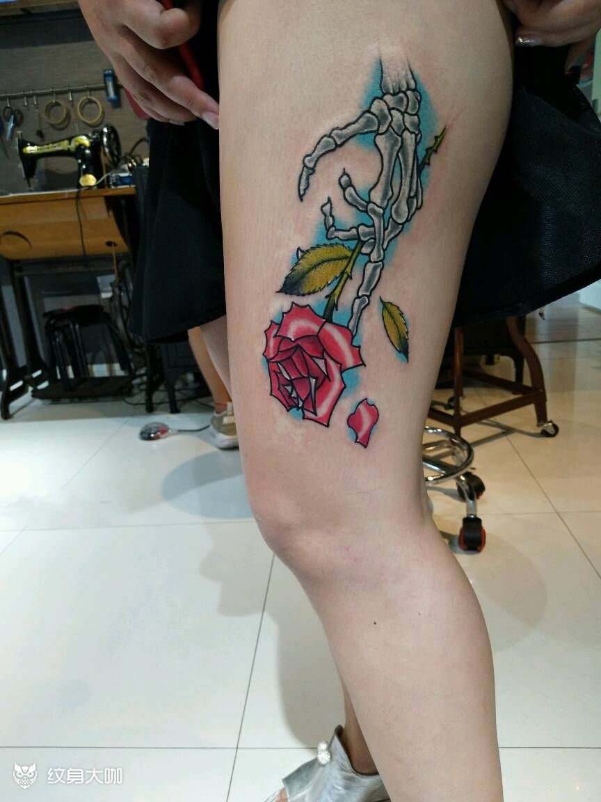 • T网红王老大花腿龙纹身图片_腿部新传统纹身图案