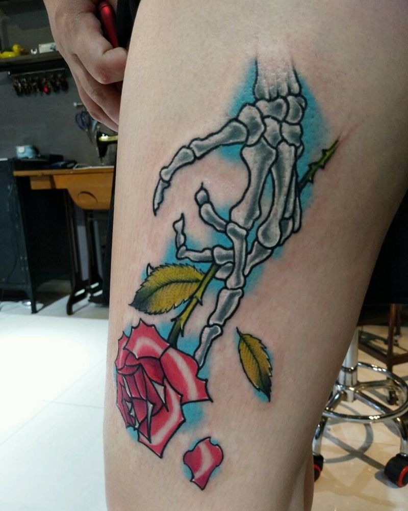 • T网红王老大花腿龙纹身图片_腿部新传统纹身图案