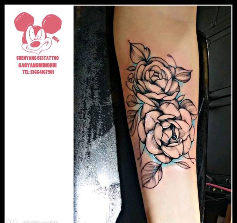 当前位置: 首页 >辽宁省沈阳市纹身店-沈阳513刺青纹身图案>点刺玫瑰纹身图片_手臂欧美清新植物原创成品纹身图案