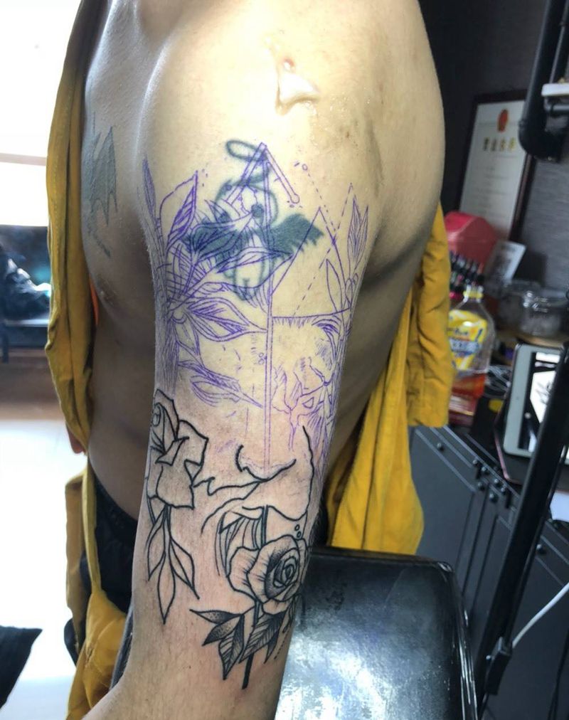 当前位置: 首页 >辽宁省沈阳市纹身店-沈阳513刺青纹身图案>遮盖作品纹身图片_成品手臂清新欧美植物人物动物纹身图案