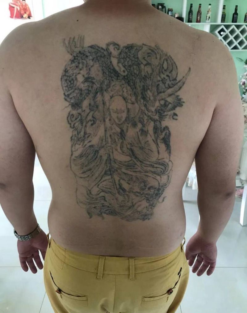 遮盖纹身图片_背部新传统貔貅遮盖纹身图案