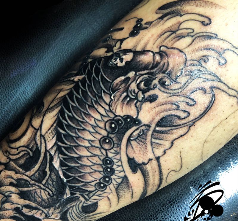 • T网红王老大花腿龙纹身图片_腿部新传统纹身图案