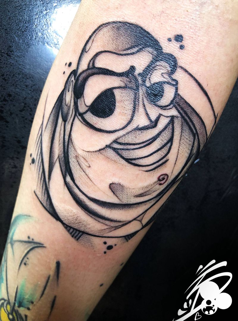 • T包小腿吹火男+阿多福纹身图片_腿部老传统新传统吹火男阿
