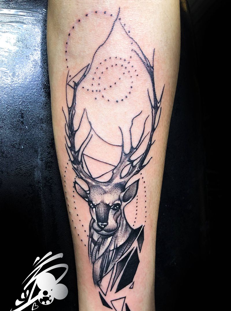 当前位置: 首页 >辽宁省沈阳市纹身店-沈阳513刺青纹身图案>鹿纹身图片_手臂几何点刺鹿纹身图案