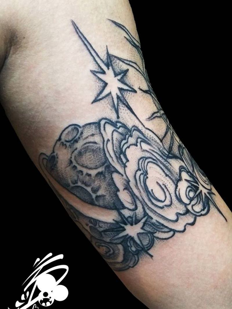 当前位置: 首页 >辽宁省沈阳市纹身店-沈阳513刺青纹身图案>臂环纹身图片_手臂几何点刺星球月亮臂环纹身图案