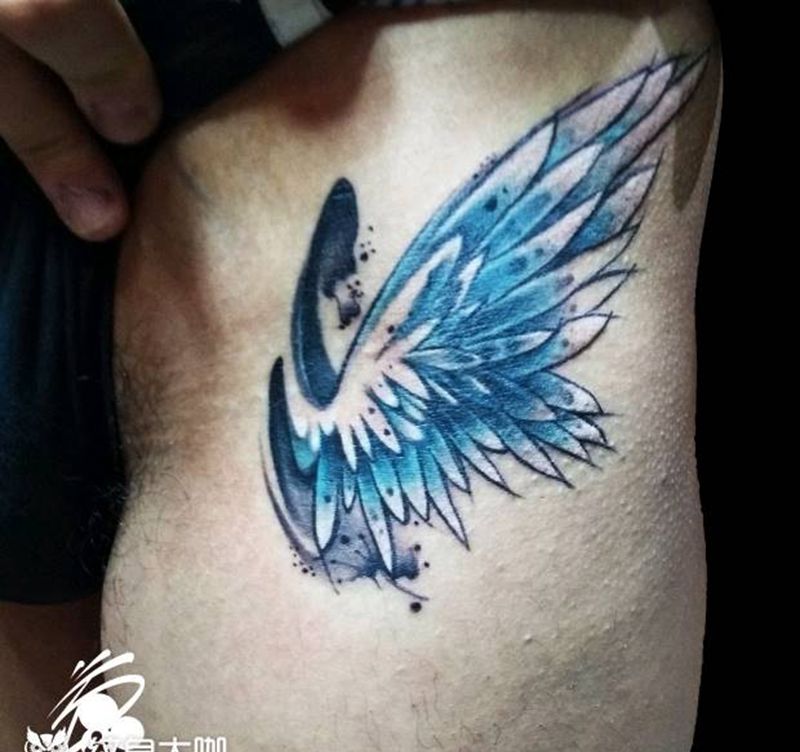 遮盖纹身图片_臀部水彩水墨翅膀羽毛遮盖纹身图案