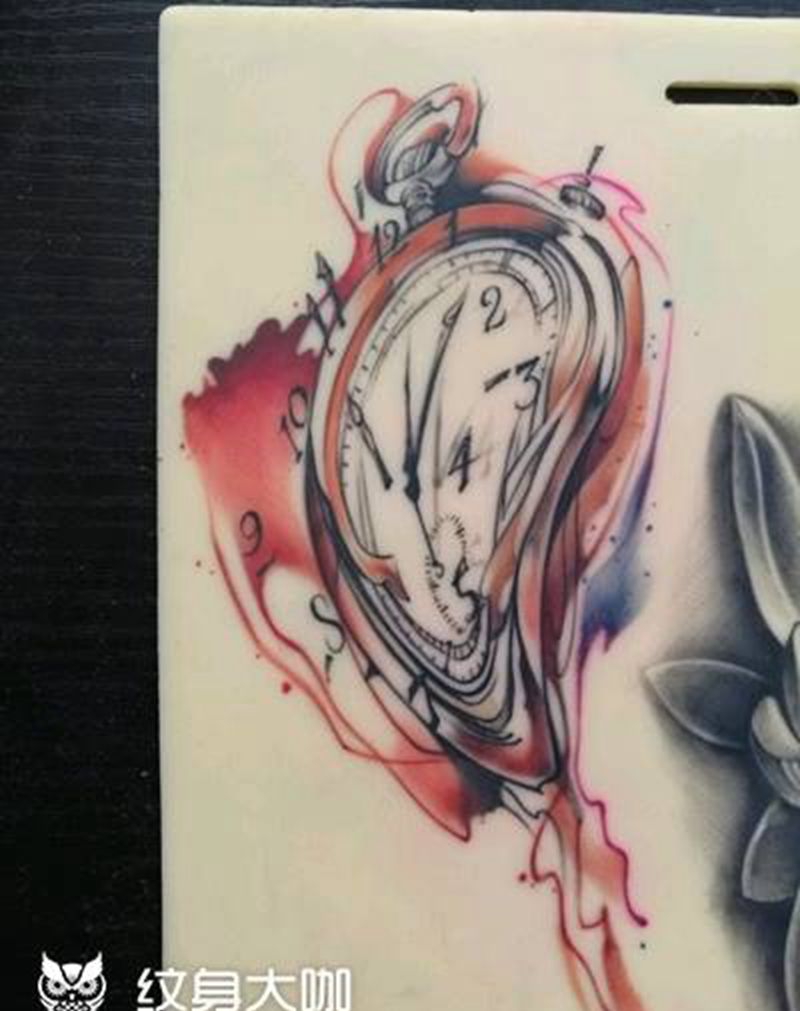 学员作品纹身图片_手臂腰部欧美写实水彩表荷花灯塔纹身图案